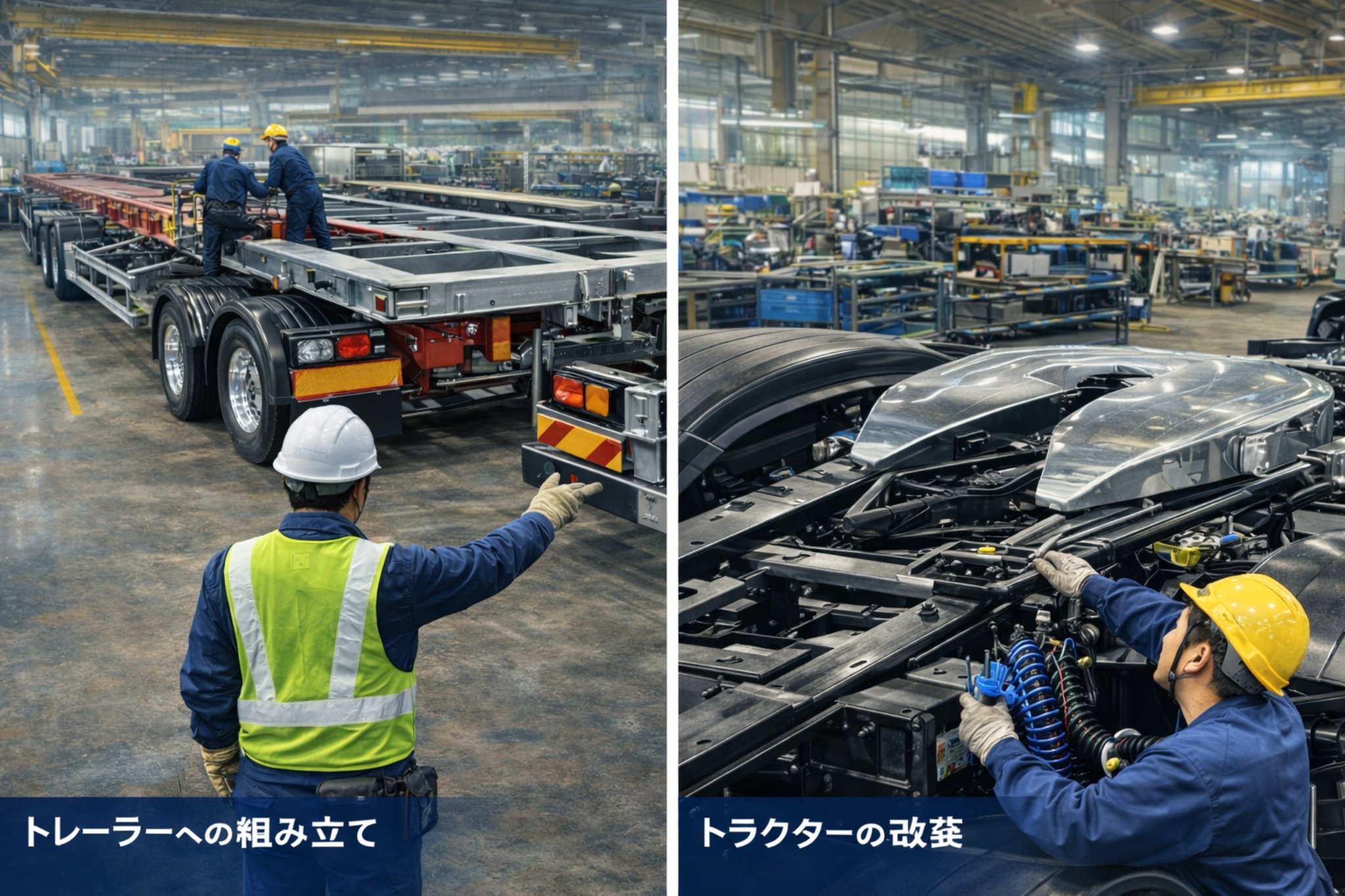 - 【兵庫県】ISO9001認証取得支援 株式会社豊車輌工作所 見津が丘工場 ① 車輌の製作 (ト レーラーヘの組み立て) ② トラクターの架装